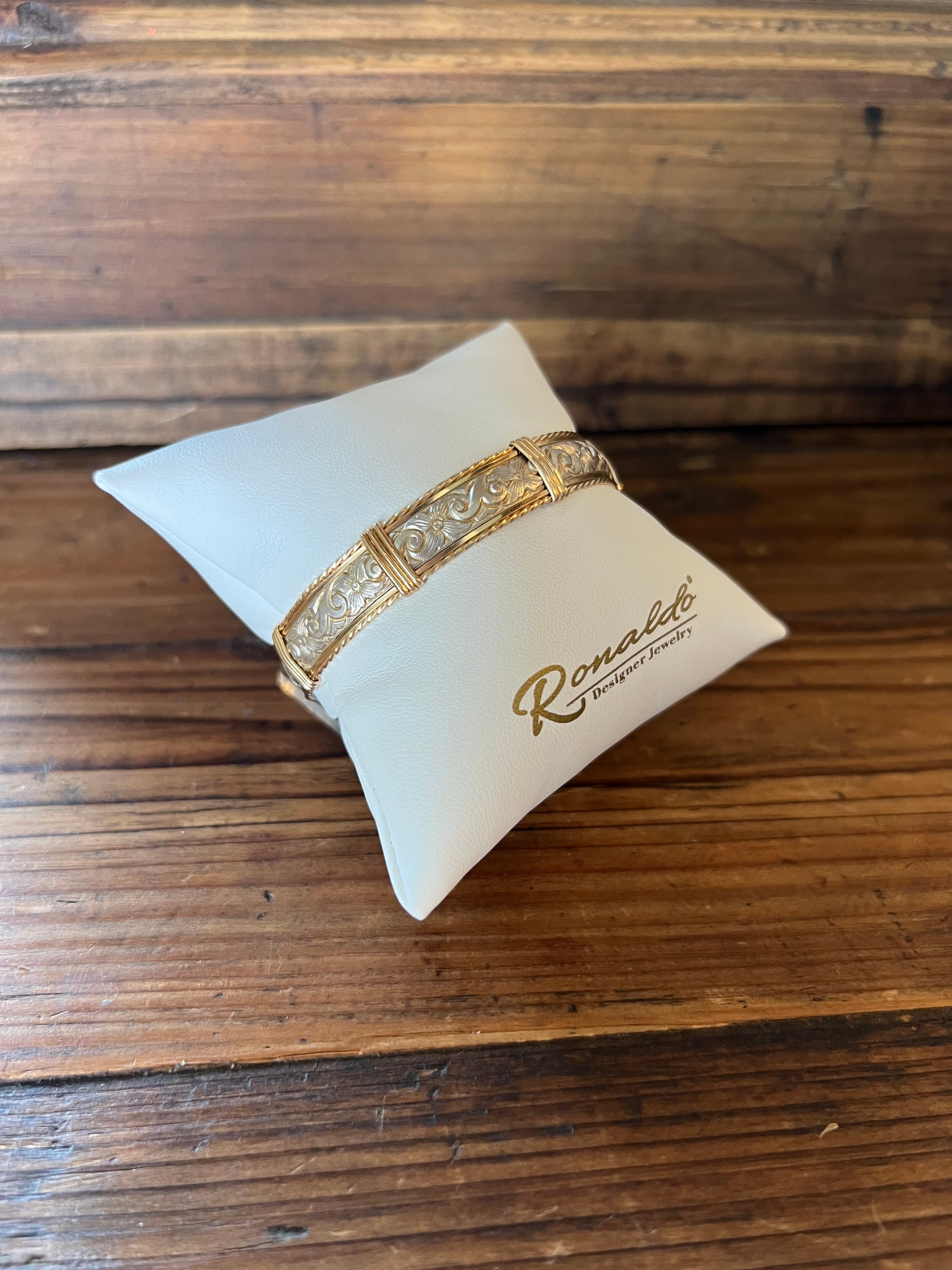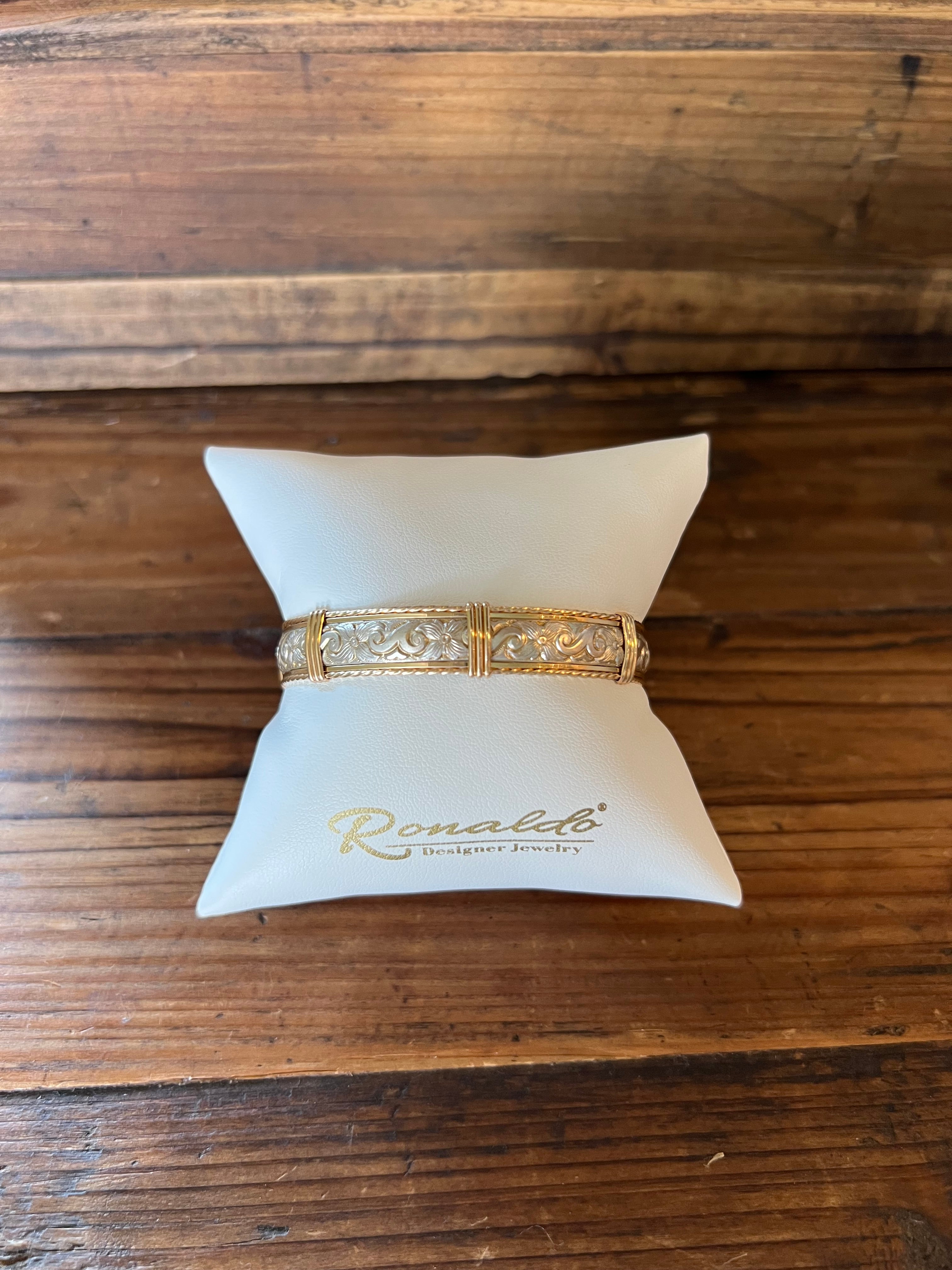 The name Angelina means little angel. This beautiful sterling silver bracelet is for the angel in your life! Made with 14K gold artist wire and sterling silver.