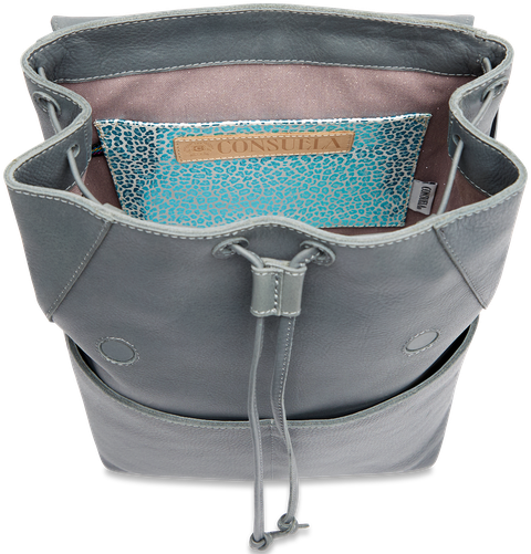 Designed with function in mind, the Backpack is stylish and roomy for carrying all of your work, school, or mom essentials! This bag fits most laptops, tablets, or notebooks up to 16” in the main compartment, secured with both a drawstring and magnetic closure to keep everything safe. Also great for traveling, this leather backpack features a hidden side zipper pocket for easy access to your documents, wallet, or phone.
