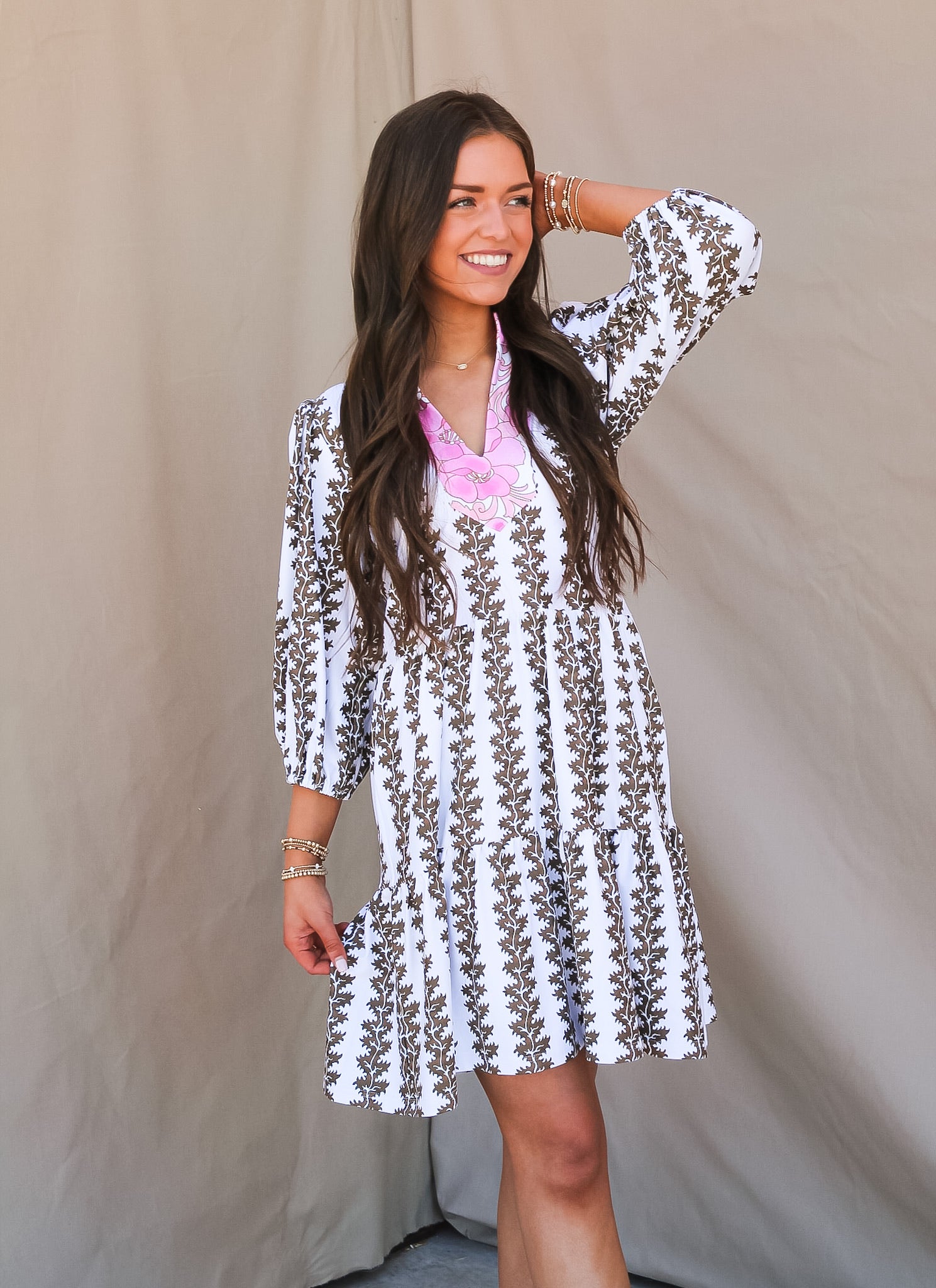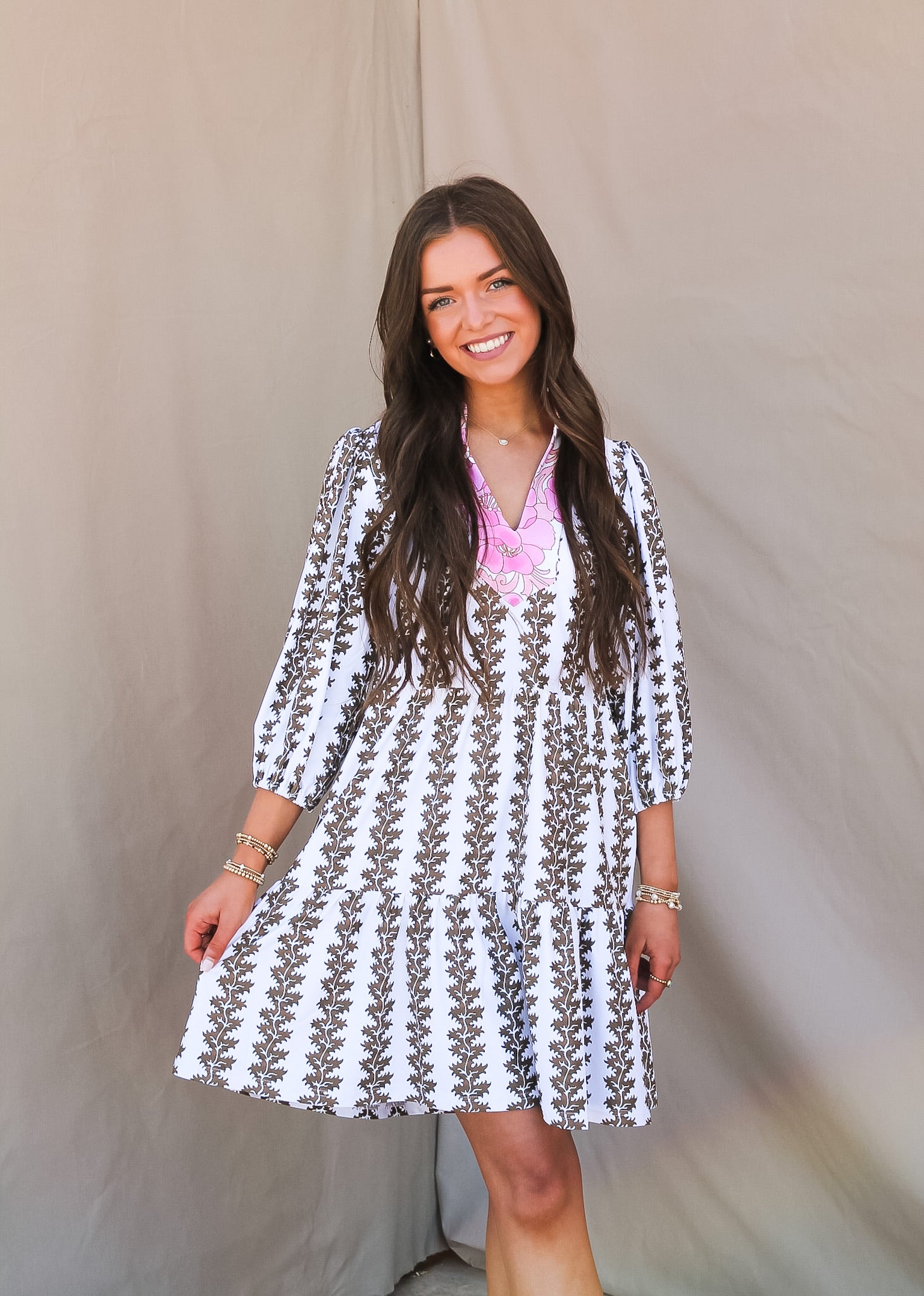 Get ready to blossom in this short, airy Boho Dress. With a playful v-neck and adorable tiered design, this dress will have you feeling light and carefree. The pink and brown color combination adds a touch of charm to any outfit!