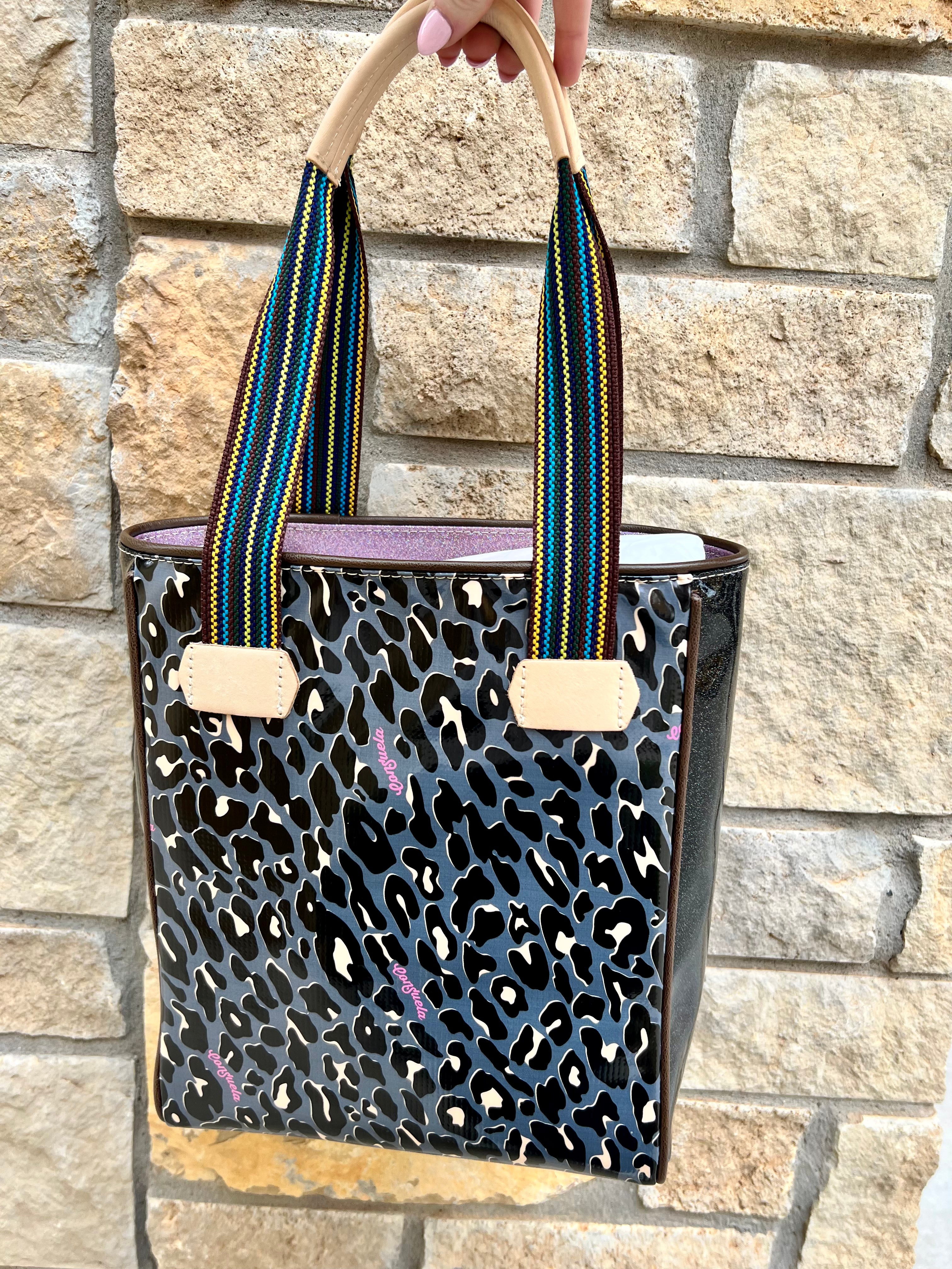 The Chica Tote, Danni, is the perfect work bag with its fun dark leopard design and super cute Consuela style. Don't sacrifice fashion for function, this tote has both!