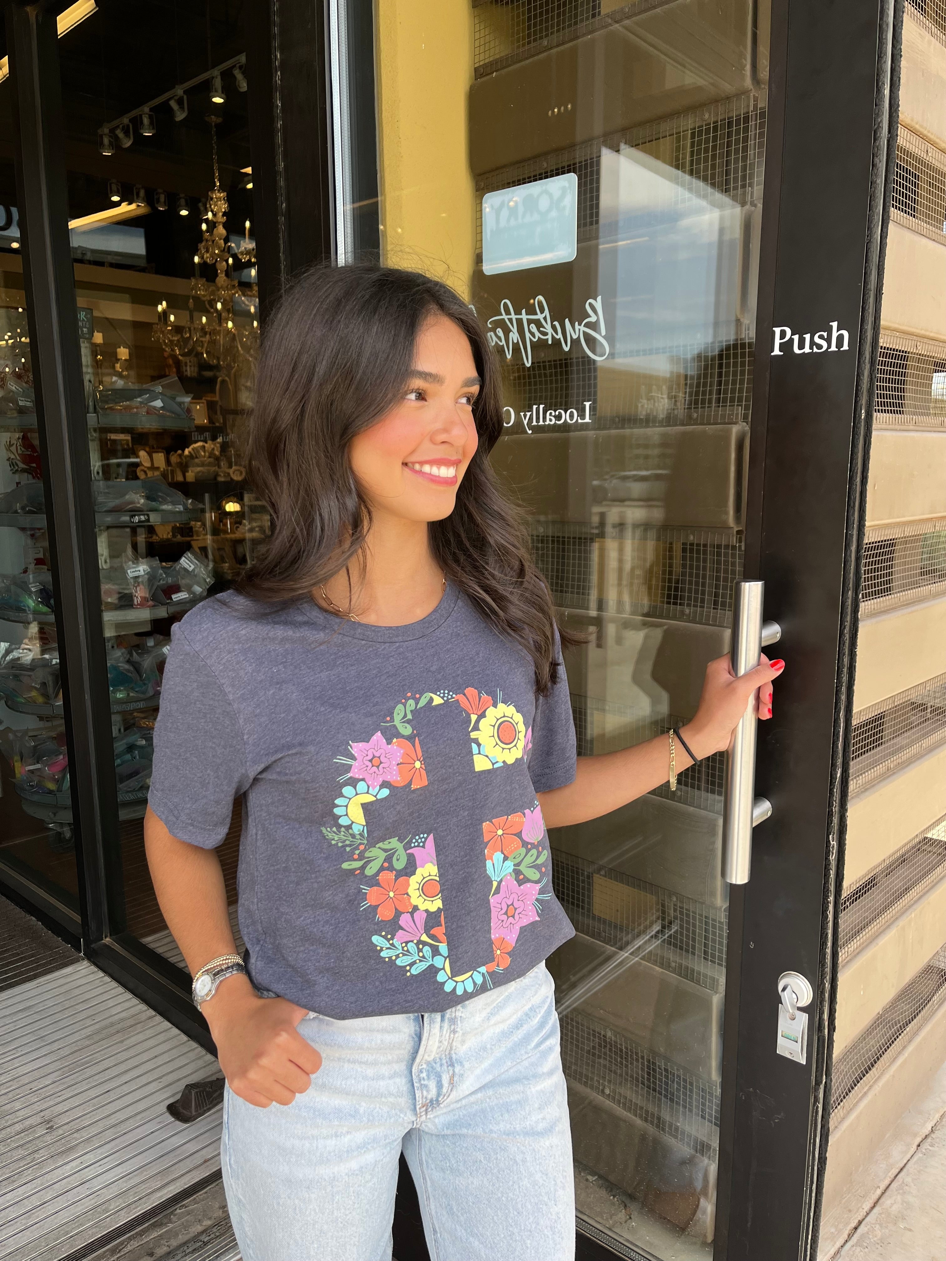 Add a pop of color to your wardrobe with our Floral Cross Tee. Made with soft material and an acid wash gray color, this tee is both comfortable and stylish. The intricate cross design is surrounded by vibrant flowers, making it a fun and unique addition to any outfit.