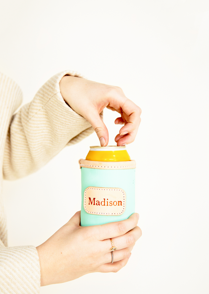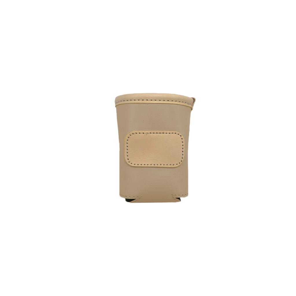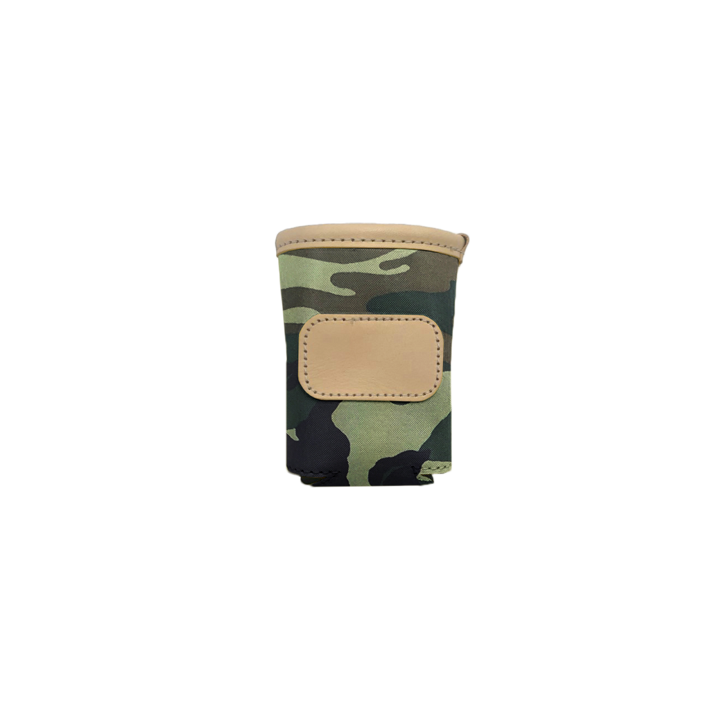 A new design for an old favorite. Keep your drinks cold with this insulated collapsible can cooler. Coated canvas with Natural Leather trim.
