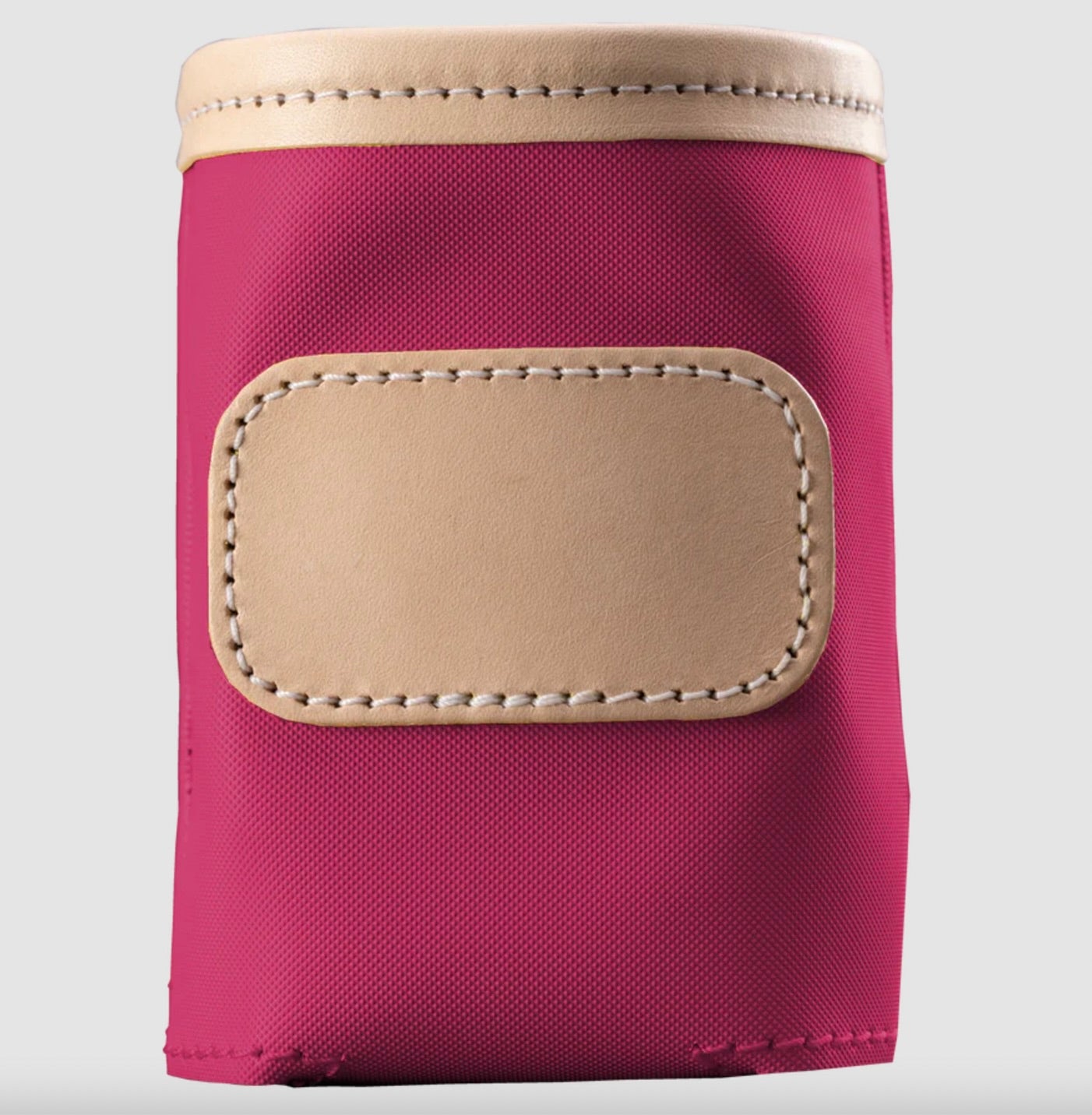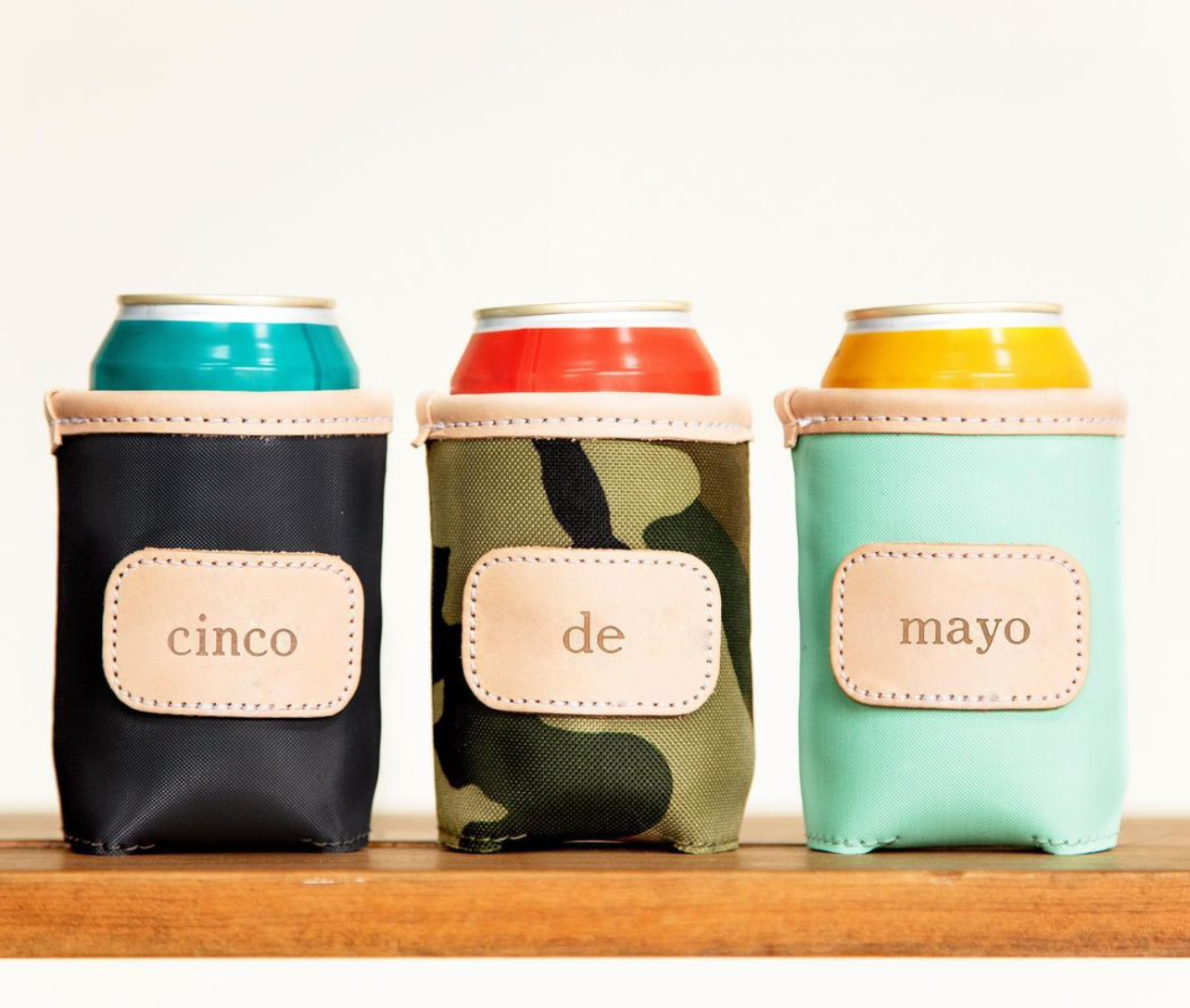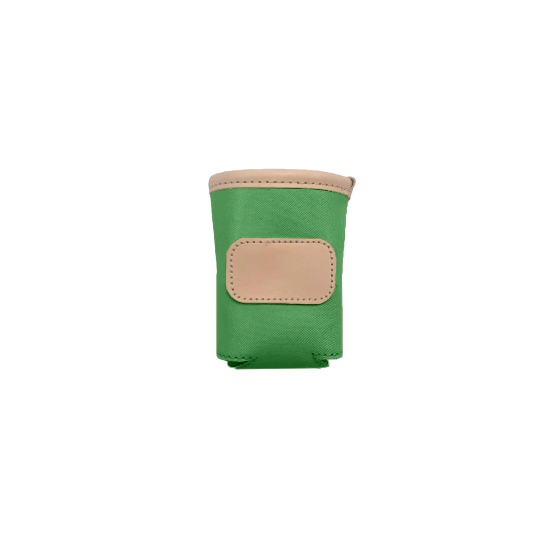 A new design for an old favorite. Keep your drinks cold with this insulated collapsible can cooler. Coated canvas with Natural Leather trim.