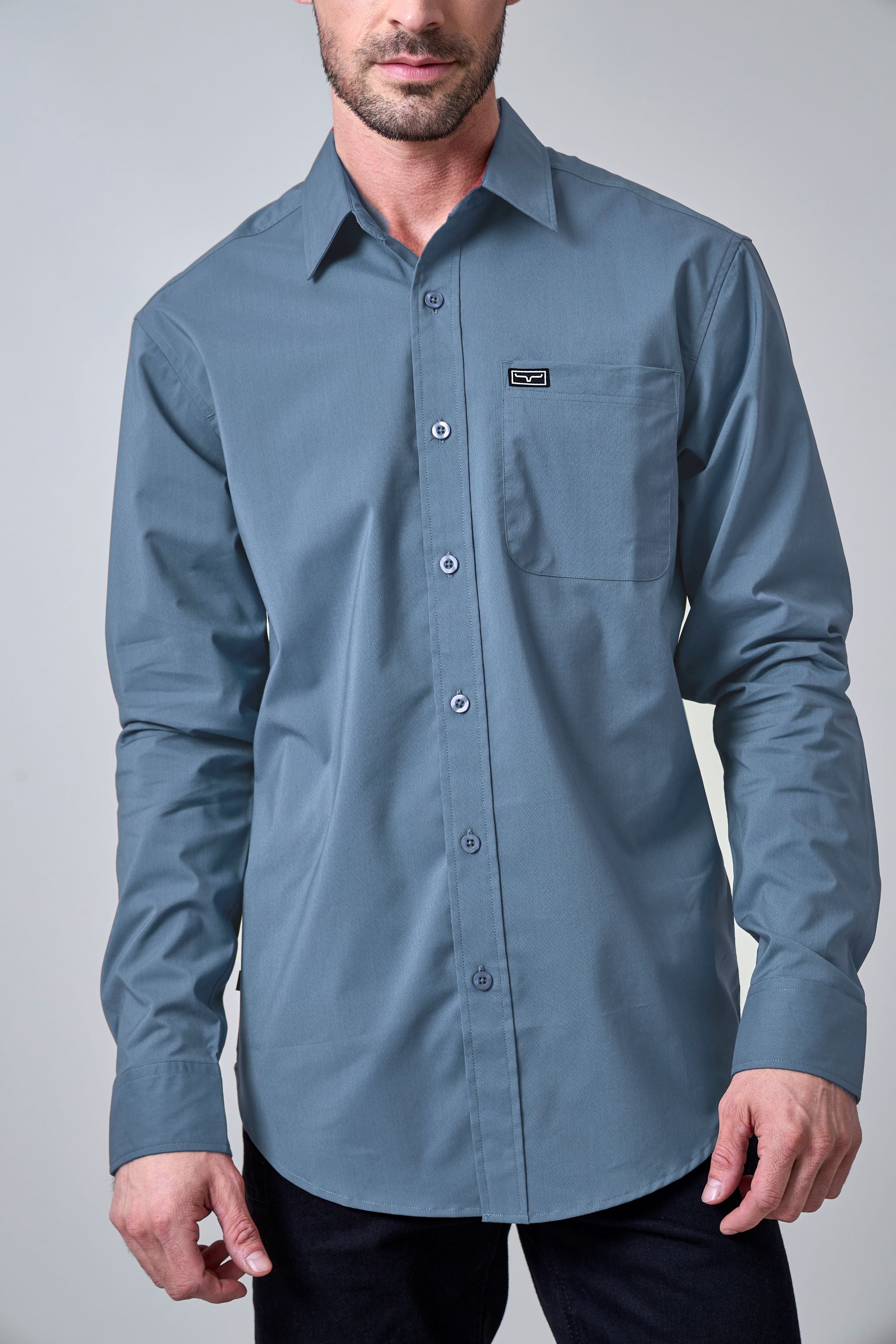 Elevate your style with the Linville Long Sleeve Dress Shirt in Slate Blue. Perfect for Fall2024, this quirky and playful shirt features a unique design and comfortable fit. Step up your fashion game with this slate blue dress shirt, perfect for any occasion. Available for men in a variety of sizes.