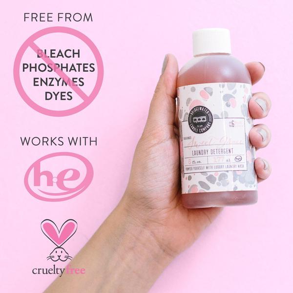 Give your laundry the VIP treatment with #1 Best Selling Fragrance Sweet Grace Laundry Detergent, now available in smaller 6oz size. Safe and effective for washable fabrics, the formula is designed to sanitize while providing long-lasting scent to clothing and linens. The detergent is approved for machine washing, hand washing, and HE washers. The detergent contains no bleach, phosphates, enzymes, or dyes. It is cruelty free and not tested on animals.